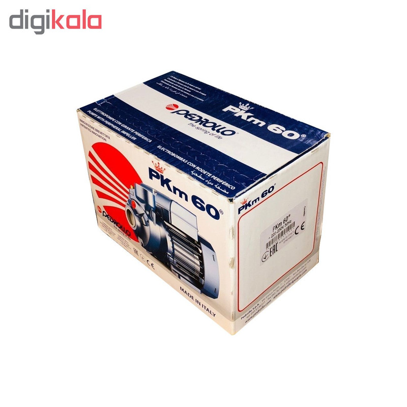 الکتروپمپ یا پمپ فشار آب پدرولو مدل PKm60 از سری پمپ های آبرسانی ساخت شرکت پدرولو (PEDROLLO) ایتالیا می باشد . این کالا یکی از محصولات برتر شرکت پدرولو می باشد که با قدرت 0.5 اسب و با دور 2900RPM در جهت آبرسانی به منازل مسکونی ( ویلایی و آپارتمان ) با آبدهی حداکثر 2.4 مترمکعب در ارتفاع 5 متری و آبدهی حداقل 0.3 مترمکعب در ارتفاع 38 متری دارای بازدهی فوق العاده می باشد . استفاده از این پمپ جهت آب تمیز و بدون ذرات جامد معلق توصیه می گردد . نصب این پمپ باید در محل ثابت و به صورت کاملا افقی باشد . این پمپ دارای شافت استنلس استیل AISI431 ، پروانه برنجی ، مکانیکال سیل سرامیک/گرافیت و محافظ حرارتی جهت قطع جریان در زمان افزایش دمای پمپ می باشد . از نکات قابل توجه و موارد برتری این پمپ نسبت به سایر پمپ های هم تراز آن می توان به عملکرد این پمپ با آب از دمای -10 الی 60+ درجه سانتی گراد اشاره کرد که در نوع خود کم نظیر است . این پمپ دارای بالاترین استاندارد اتحادیه اروپا CE می باشد .