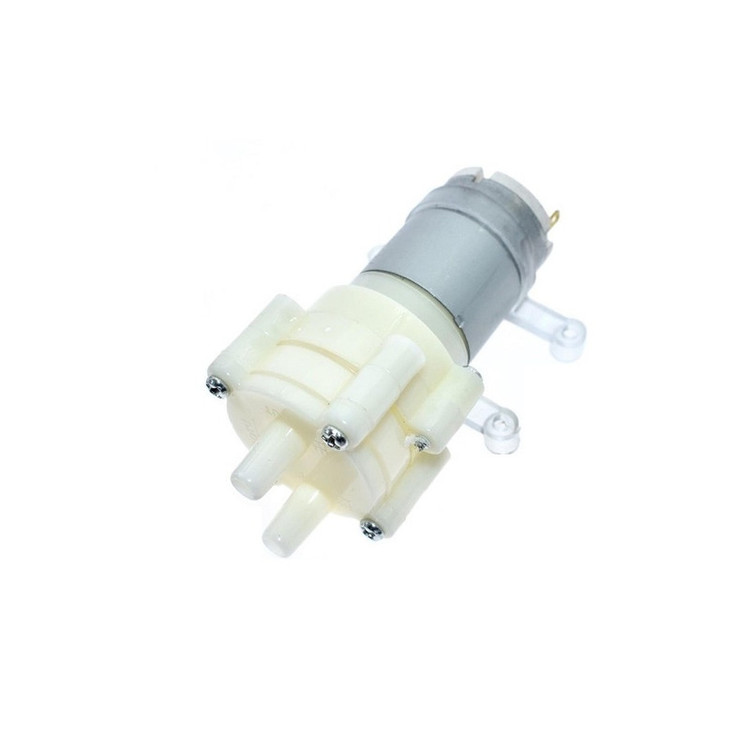 پمپ دیافراگمی مدل R385 با ولتاژ 12 ولت قابل راه اندازی است. پمپ های دیافراگمی پمپ هایی هستند که توسط بالا و پایین شدن صفحه دیافراگم، عمل پمپاژ را انجام می دهد. در این نوع پمپ از هیچ نوع پروانه ای استفاده نشده و عمل جابجا شدن سیال یا هوا توسط یک صفحه انعطاف پذیر به اسم دیافراگم انجام می گیرد. این دسته از پمپ ها برای پمپاژ آب و هوا مناسب میباشند و در بسیاری از پروژه ها و دستگاه ها کاربرد دارد. پمپ دیافراگمی مدل R385 با توجه به مکانیزم کاری، بازده بالا، قیمت مناسب و کاربری آسان در اکثریت کاربردهای صنعتی قابل استفاده است و در موارد بسیار زیادی جایگزین پمپ های قدیمی در صنایع شده است. این پمپ قابلیت انتقال 1.5 تا 2 لیتر مایعات در هر دقیقه را دارد و توان مکش آن نیز 2 لیتر می باشد. این پمپ علاوه بر پمپاژ مایعات روان، امکان پمپاژ مایعات با وسیکوزیته بالا را نیز دارد. پمپ دیافراگمی توانایی انتقال سیالات به ارتفاع دو الی سه متر را دارد. مزیت پمپ های دیافراگمی موتور الکتریکی کم مصرف آنها در کنار توانایی انتقال هوا یا آب می باشد و برای انتقال آب از ارتفاع پایینتر نیازی نیست که پمپ داخل آب قرار گیرد و به هواگیری نیز نیازی ندارد و فقط کافیست یک شلنگ نازک را به قسمت ورودی هوا و آب (قسمت مکش) محکم متصل کرد و آن سر شلنگ را داخل آب گذاشت، بعد از روشن کردن پمپ ابتدا فضای داخل شلنگ خالی از هوا می شود و در آن به نوعی خلا ایجاد می شود سپس حسب اختلاف فشار بوجود آمده، آب از شلنگ بالا می آید و از لوله خروجی آن خارج می شود. کاربردهای بیشماری می توان برای این نوع پمپ در انواع مشاغل پیدا کرد از جمله جهت آبیاری قطره ای درختان و گیاهان و استفاده در گلخانه ها، همچنین این پمپ می تواند بعنوان پمپ هوای آکواریوم و یا برای تخلیه آب آکواریم یا جابه جایی آب بین مخازن مختلف کاربرد داشته باشد.