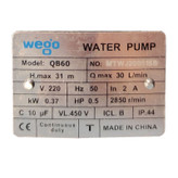 پمپ نیم اسب ویگو مدل QB60 از سری پمپ های با کیفیت و با قیمت بسیار مناسب در بازار ایران می باشد. این پمپ جهت تامین فشار آب خانگی و دستگاه های تهویه مطبوع به کار برده می شود. این پمپ می تواند جهت انتقال آب تمیز و یا دیگر سیالاتی که از نظر خصوصیات فیزیکی و شیمیایی مشابه آب می باشند،به کار برده شود.