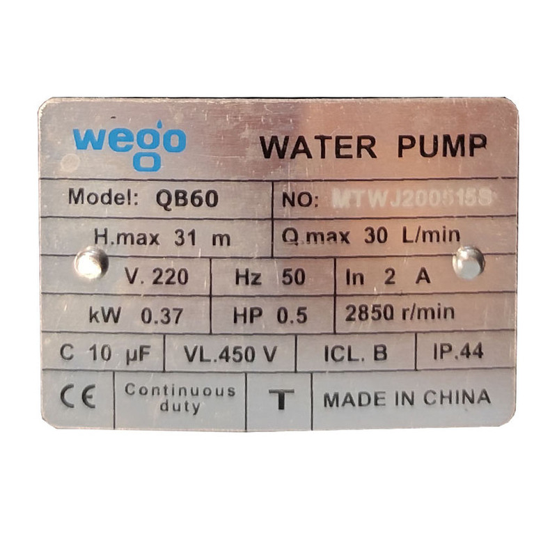 پمپ نیم اسب ویگو مدل QB60 از سری پمپ های با کیفیت و با قیمت بسیار مناسب در بازار ایران می باشد. این پمپ جهت تامین فشار آب خانگی و دستگاه های تهویه مطبوع به کار برده می شود. این پمپ می تواند جهت انتقال آب تمیز و یا دیگر سیالاتی که از نظر خصوصیات فیزیکی و شیمیایی مشابه آب می باشند،به کار برده شود.