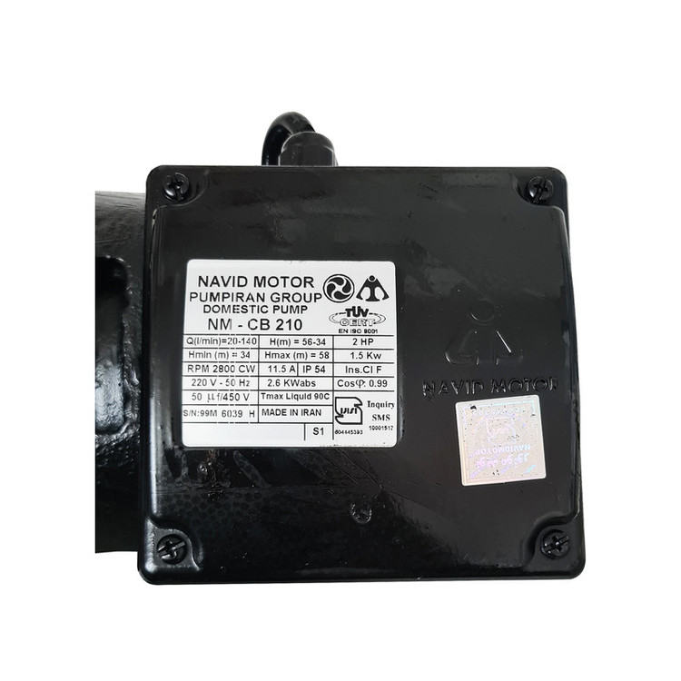 پمپ افزایش فشار آب خانگی نوید موتور سری CB (سانتریفیوژ دو پروانه) مناسب برای افزایش فشار آب در ویلاها، ساختمانها و کارگاهها، شبکه های آبرسانی و همچنین آبیاری زمین کاربرد دارد. جهت کارکرد صحیح این پمپ، سیال مورد نظر باید بدون ذرات جامد بوده و غیر خورنده باشد. جنس پروانه این مدل از پلاستیک میباشد. همچنین بدنه پمپ از چدن و شفت آن از فولاد ضد زنگ ساخته شده است. پمپ های آبرسانی خانگی نوید موتور با قیمت مناسب، عملکرد قابل قبول و ضمانت نامه شرکتی میتواند انتخابی مقرون بصرفه باشد.پمپهای آبرسانی خانگی سری CB210 نوید موتور دارای الکتروموتور های استاندارد دارای ترموگارد با 2900 دور در دقیقه و کلاس سیم پیچی B, F و درجه حفاظتی IP54 (مقاوم در برابر هرگونه پاشش آب) بوده و از نوع تک فاز با قدرت 2 اسب بخار میباشد. حداکثر دمای سیال در این پمپ +50 درجه سانتیگراد بوده و دارای حداکثر هد 57 متر و حداکثر دبی آبدهی 8.4 متر مکعب در ساعت میباشد. پمپ 2 اسب دو پروانه مناسب برای ساختمان های 4 و 5 طبقه کم واحد با متراژ متوسط یا بالا می باشند. جهت اطلاع از موارد کاربری پمپ فوق، جدول پیشنهادی پایین صفحه را مشاهده فرمایید.