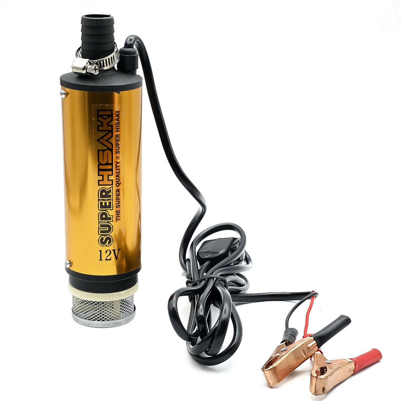 پمپ گازوئیل کش با برق 12 ولت (برق باطری خودرو ها) کار می کند. این پمپ میتواند از داخل مخزن یا باک ماشین آلات (بنزین ، گازوییل، روغن، کروزنو، پارافین، روغن هیدرولیک و سایر روغن ها ) سوخت کشی انجام دهد. این پمپ ها می توانند از ارتفاع 2.5 متری مکش کرده و با قدرت بسیار بالا تا 5 متر ارتفاع سوخت رسانی انجام دهد.از ویژگی های مهم این پمپ ها سرعت سوخت کشی است. در واقع به علت نیروی خوب موتور این پمپ ها، به راحتی می توان انتقال را انجام داد. در واقع به علت نیروی بالای موتور پمپ گازوئیل کش برقی ماشین آلات راهسازی، به راحتی می توان انتقال را انجام داد.پمپ تخلیه گازوئیل دارای انبرهای سوسماری شکل برای اتصال به برق باطری می باشد