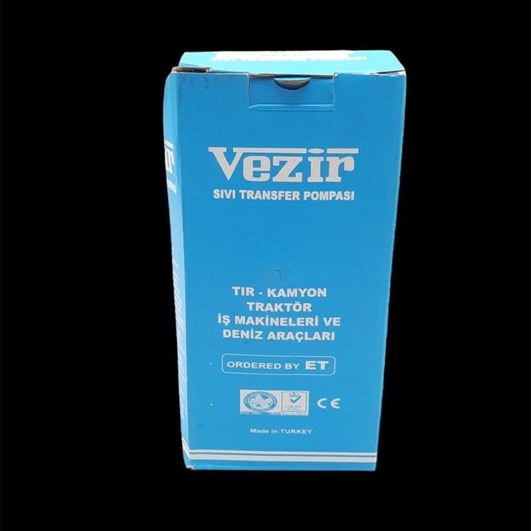 پمپ روغن کش وزیر ساخت ترکیه می باشد... این پمپ با برق 12 ولت (برق باطری خودرو ها) کار می کند. این پمپ میتواند از داخل مخزن یا باک ماشین آلات (بنزین ، گازوییل، روغن، کروزنو، پارافین، روغن هیدرولیک و سایر روغن ها تا 15 سانتیمتر) سوخت کشی انجام دهد. این پمپ ها می توانند از ارتفاع 5 متری مکش کرده و با قدرت بسیار بالا تا 10 متر ارتفاع سوخت رسانی انجام دهد.از ویژگی های مهم این پمپ ها سرعت سوخت کشی است. در واقع به علت نیروی خوب موتور این پمپ ها، به راحتی می توان انتقال را انجام داد. در واقع به علت نیروی بالای موتور پمپ گازوئیل کش برقی ماشین آلات راهسازی، به راحتی می توان انتقال را انجام داد.پمپ تخلیه گازوئیل دارای انبرهای سوسماری شکل برای اتصال به برق باطری می باشد