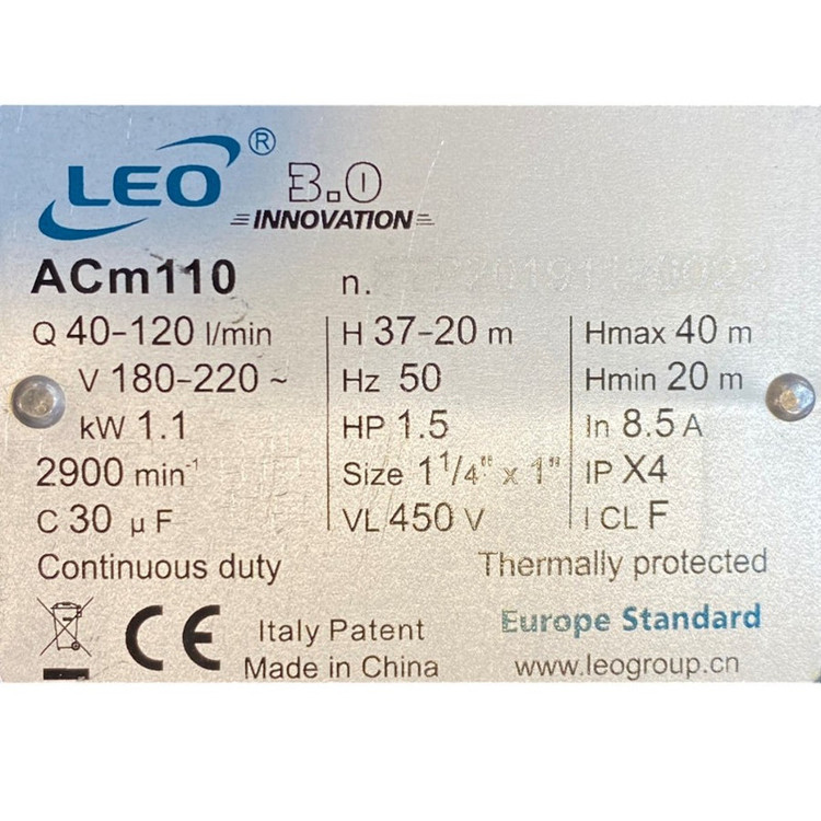 پمپ آب لئو مدل بشقابی 1/5 اسب تکفاز کد ACm110