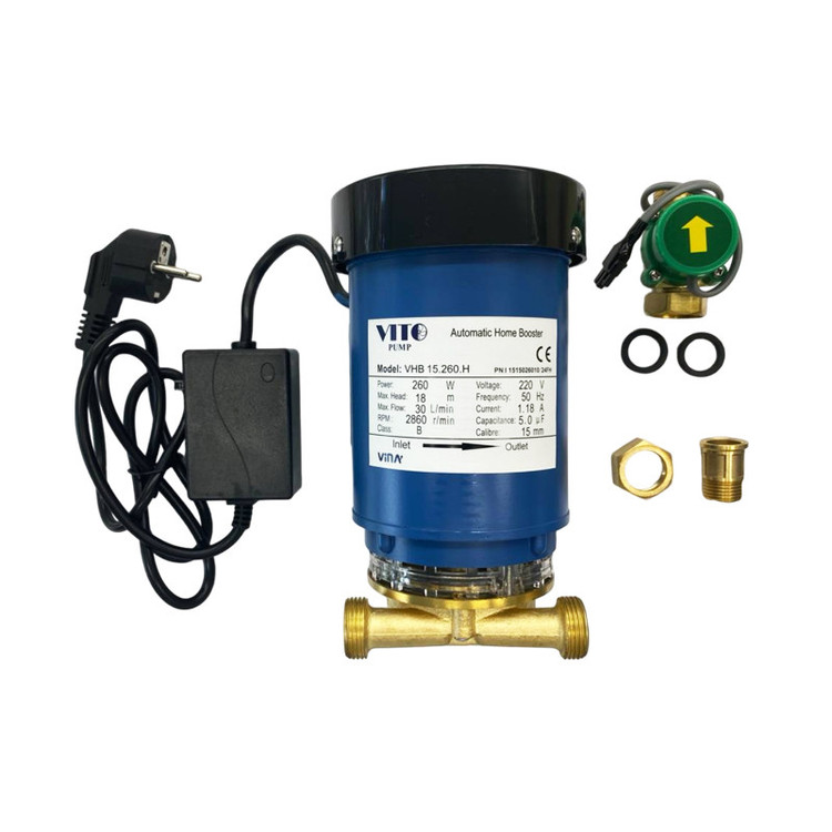 پمپ زیر پکیجی ویتو، یک پمپ با توان 260 وات است که بهطور خاص برای افزایش فشار آبگرمکنهای دیواری و سیستمهای آب خانگی طراحی شده است. این پمپ دارای حداکثر دبی 30 لیتر در دقیقه و هد (ارتفاع پمپاژ) تا 18 متر میباشد، که برای ساختمانهای مسکونی چندطبقه و فضاهایی با فشار آب کم مناسب است. پمپ آبگرمکن ویتو به صورت خودکار کار میکند و با قابلیت تشخیص جریان آب، بهطور خودکار روشن و خاموش میشود. همچنین، به دلیل طراحی کمصدا و کوچک، نصب آن در محیطهای خانگی بسیار راحت است. این پمپ برای استفاده با آبگرمکنهای دیواری و در مناطقی که فشار آب پایین است، ایدهآل بوده و بهویژه برای تقویت فشار آبگرمکنها کاربرد دارد.