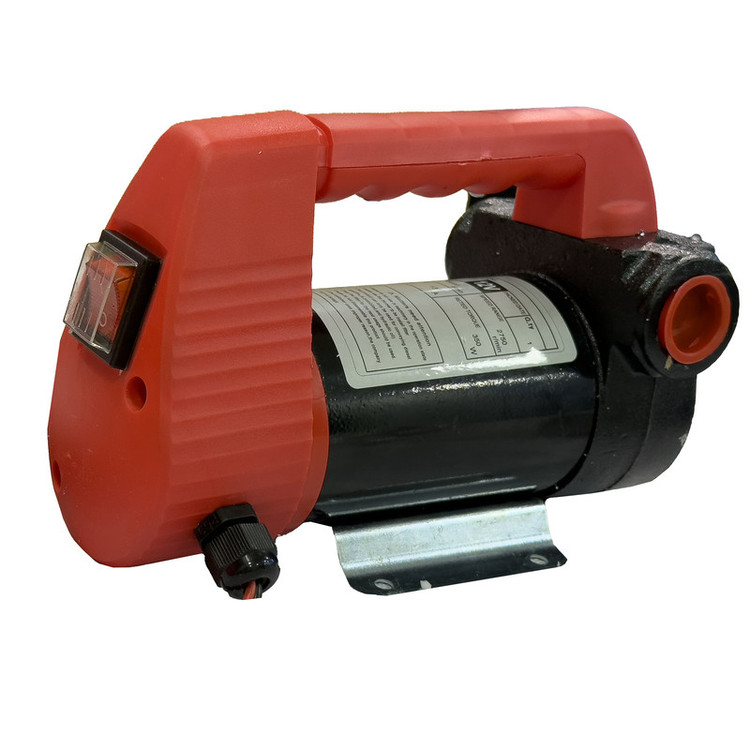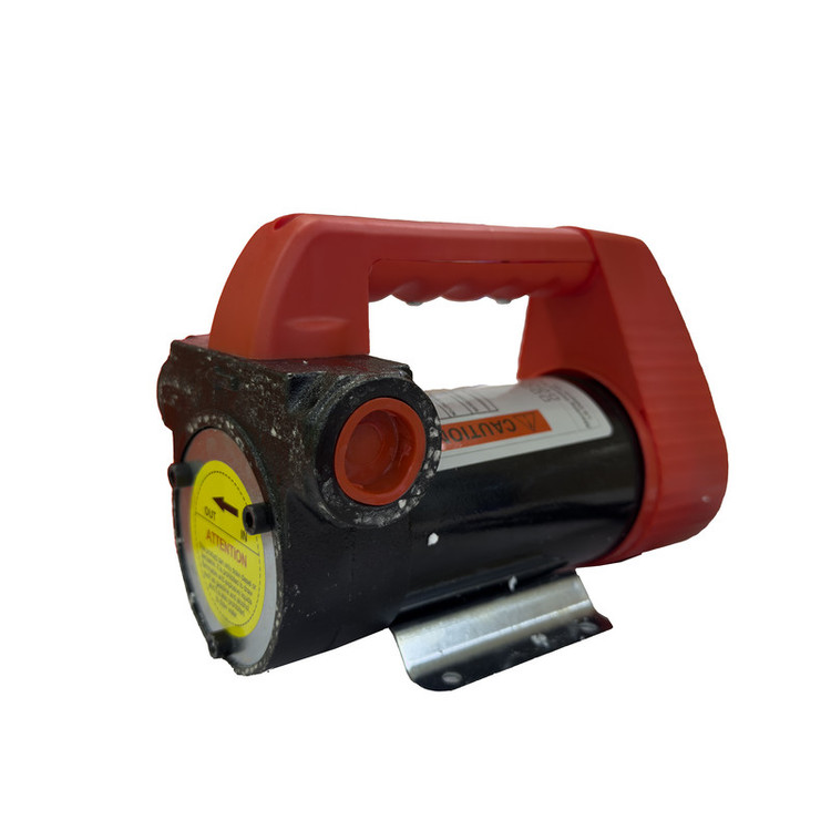پمپ گازوئیل کش با برق 12 ولت (برق باطری خودرو ها ) کار می کند. این پمپ میتواند از داخل مخزن یا باک ماشین آلات (بنزین ، گازوییل، روغن، کروزنو، پارافین، روغن هیدرولیک و سایر روغن ها سوخت کشی انجام دهد. این پمپ ها می توانند از ارتفاع 5 متری مکش کرده و با قدرت بسیار بالا تا 10 متر ارتفاع سوخت رسانی انجام دهد.از ویژگی های مهم این پمپ ها سرعت سوخت کشی است. در واقع به علت نیروی خوب موتور این پمپ ها، به راحتی می توان انتقال را انجام داد. در واقع به علت نیروی بالای موتور پمپ گازوئیل کش برقی ماشین آلات راهسازی، به راحتی می توان انتقال را انجام داد.پمپ تخلیه گازوئیل دارای انبرهای سوسماری شکل برای اتصال به برق باطری می باشد و همچنین دارای کلید روشن و خاموش بر روی بدنه دستگاه است.