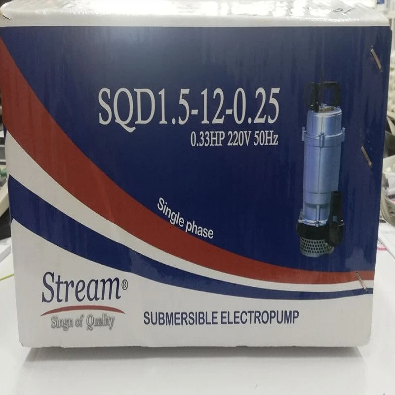 پمپ کفکش 12 متری استریم سری SQD محصول شرکت استریم است، این شرکت با کیفیت بالای خود و قیمت مناسب سهم زیادی از بازار پمپ و الکترو موتور ایران را در اختیار دارد. از ویژگی های این پمپ میتوان به سیم پیچی موتور آن اشاره کرد که از جنس مس بوده و با داشتن شفتی استیل از زنگزدگی جلوگیری می کند و همچنین با داشتن بدنه ای از جنس آلمینیوم وزن آن تا حد امکان پایین آمده. موتور این کف کش 0.37 اسب قدرت دارد و خروجی آن 1 اینچ است که پمپاژ آب تا حداکثر 12 متر و آبدهی آن حداکثر 4 متر مکعب در ساعت است. این پمپ مناسب تخلیه استخر ها ، کشیدن آب از چاه ، و آبیاری و … است.