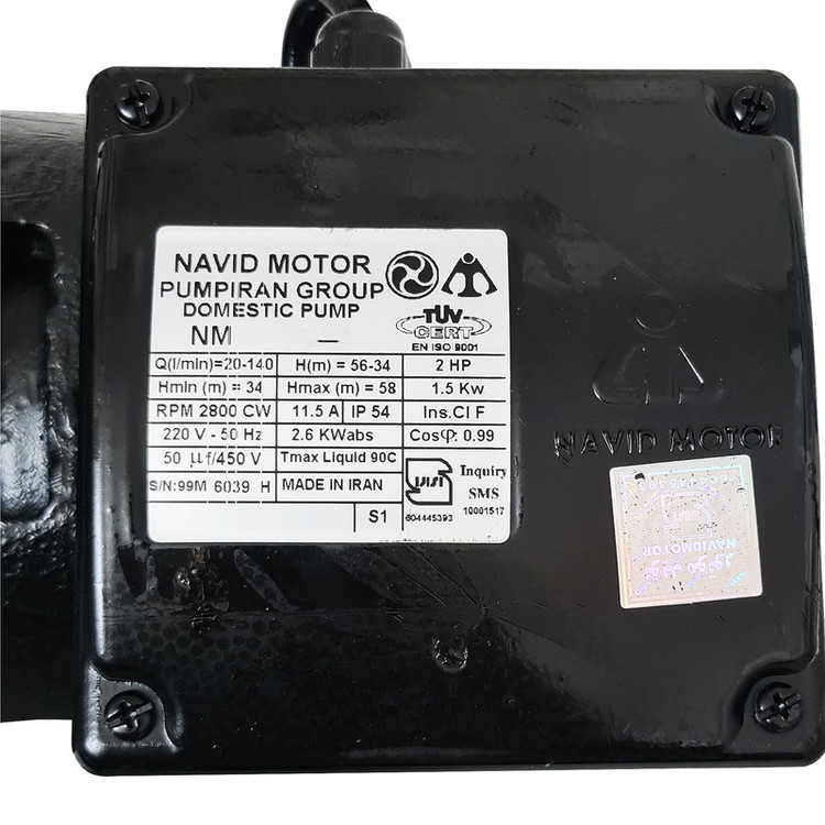 پمپ افزایش فشار آب خانگی نوید موتور سری CB (سانتریفیوژ دو پروانه) مناسب برای افزایش فشار آب در ویلاها، ساختمانها و کارگاهها، شبکه های آبرسانی و همچنین آبیاری زمین کاربرد دارد. جهت کارکرد صحیح این پمپ، سیال مورد نظر باید بدون ذرات جامد بوده و غیر خورنده باشد. جنس پروانه این مدل از استیل میباشد. همچنین بدنه پمپ از چدن و شفت آن از فولاد ضد زنگ ساخته شده است. پمپ های آبرسانی خانگی نوید موتور با قیمت مناسب، عملکرد قابل قبول و ضمانت نامه شرکتی میتواند انتخابی مقرون بصرفه باشد.پمپهای آبرسانی خانگی سری CB210 نوید موتور دارای الکتروموتور های استاندارد دارای ترموگارد با 2900 دور در دقیقه و کلاس سیم پیچی B, F و درجه حفاظتی IP54 (مقاوم در برابر هرگونه پاشش آب) بوده و از نوع تک فاز با قدرت 2 اسب بخار میباشد. حداکثر دمای سیال در این پمپ +50 درجه سانتیگراد بوده و دارای حداکثر هد 57 متر و حداکثر دبی آبدهی 8.4 متر مکعب در ساعت میباشد. پمپ 2 اسب دو پروانه مناسب برای ساختمان های 4 و 5 طبقه کم واحد با متراژ متوسط یا بالا می باشند.