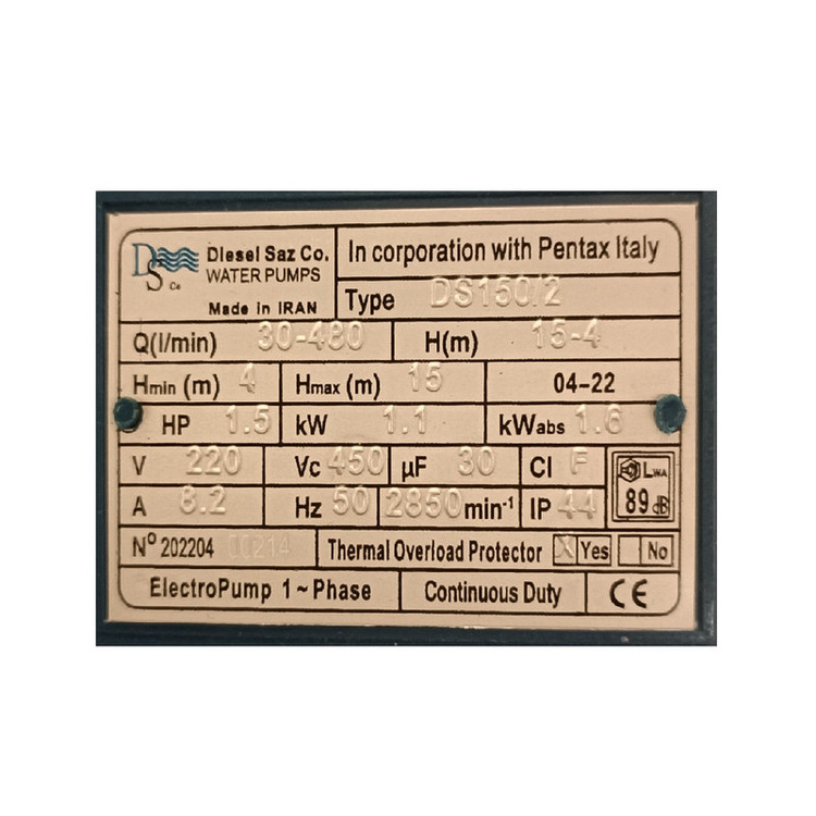 DS150/2 تکفاز 13 متر پمپ سانتریفیوژی ایرانی دیزلساز با توان جابجایی حداکثر 48 متر مکعب آب در ساعت تا حداکثر ارتفاع 13 متر برای مصارف کشاورزی خانگی و استخری مورد استفاده قرار می گیرد.
