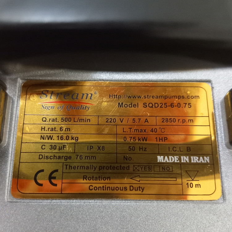 ویژگیهای پمپ سیالات: تکفاز , پوسته آلومینیومی , دارای محافظ حرارتی , قابلیت غوطهور شدن