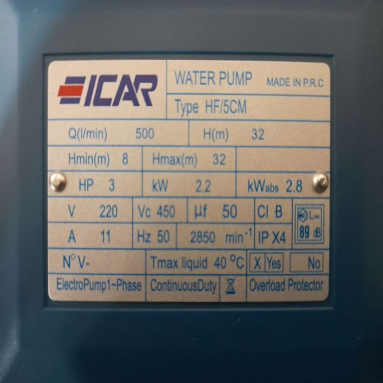 پمپ آب 3 اسب بخار ایکار مدل HF5CM